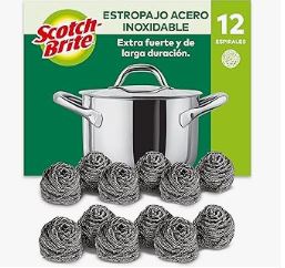 - Estropajos de Acero Inoxidable: Estos estropajos son perfectos para eliminar manchas difíciles y residuos de ollas, sartenes y otros utensilios de cocina. Son duraderos y resistentes a la oxidación.